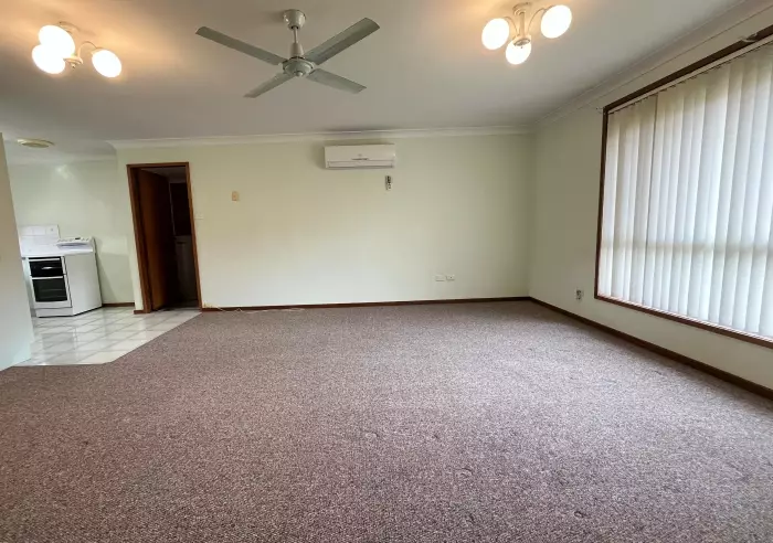 • Spacious carpeted living and dining areas, with ceiling fans and split system air conditioner
